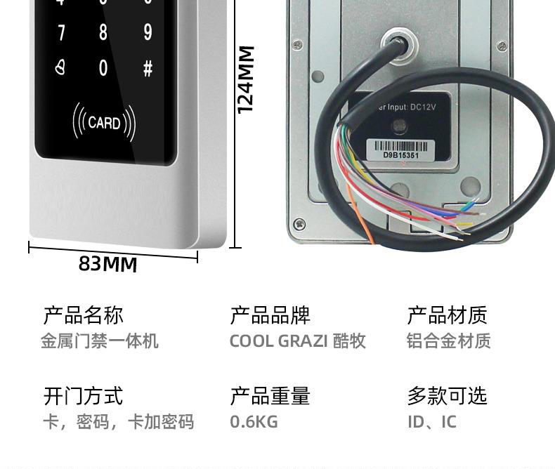 读卡类型:可选同时读125KHZ的EM和HID卡,可选同时读13.56KHZ的EM和HID卡