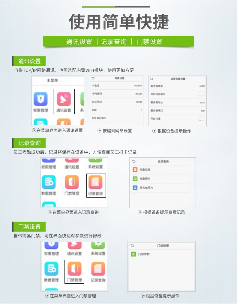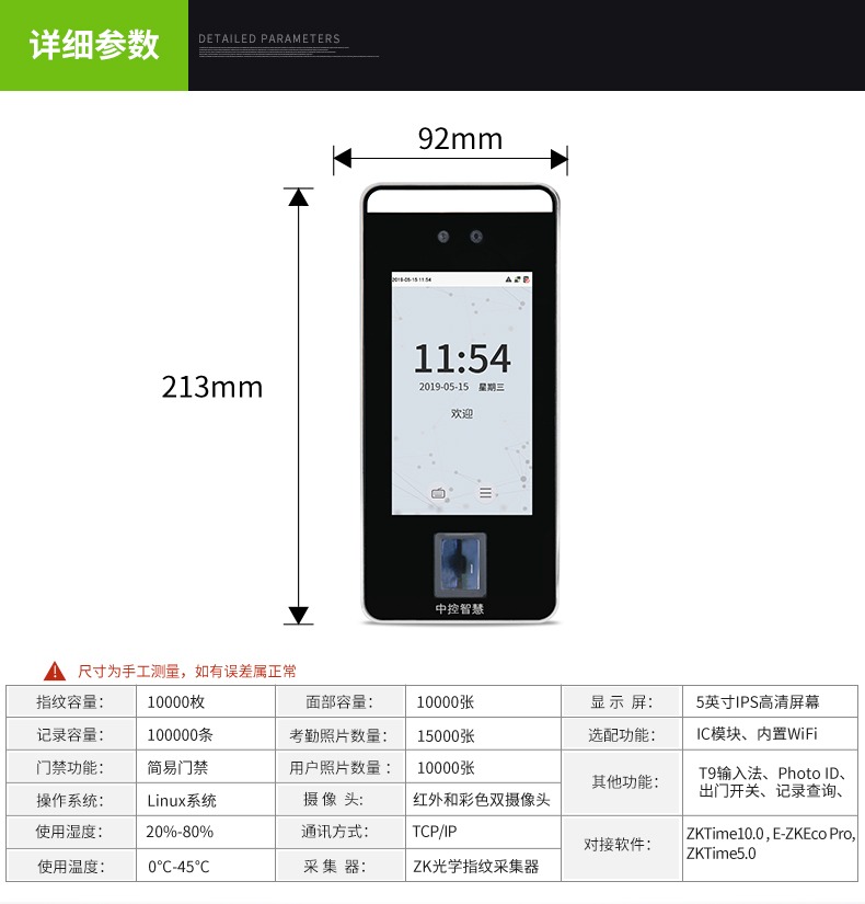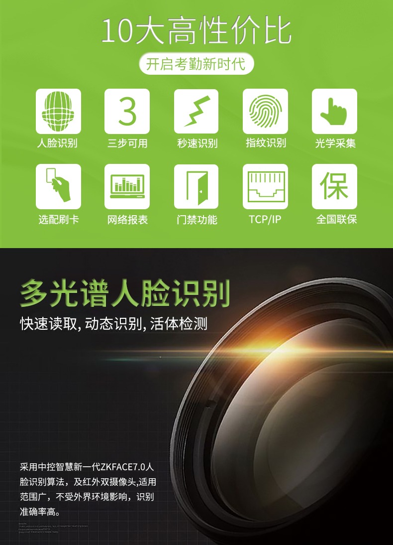 xFace600是根据市场需求,推出的多光谱智能人脸识别终端,区别于以往的人脸静态识别,具有快速读取、动态识别的功能。xFace600采用Linux操作系统,具有指纹验证、人脸识别等多种验证方式,签到多种选择,轻松考勤;中英文输入法,轻松编写。标配Wiegand in/out,具有门磁、报警等多种功能,守护您工作安全。